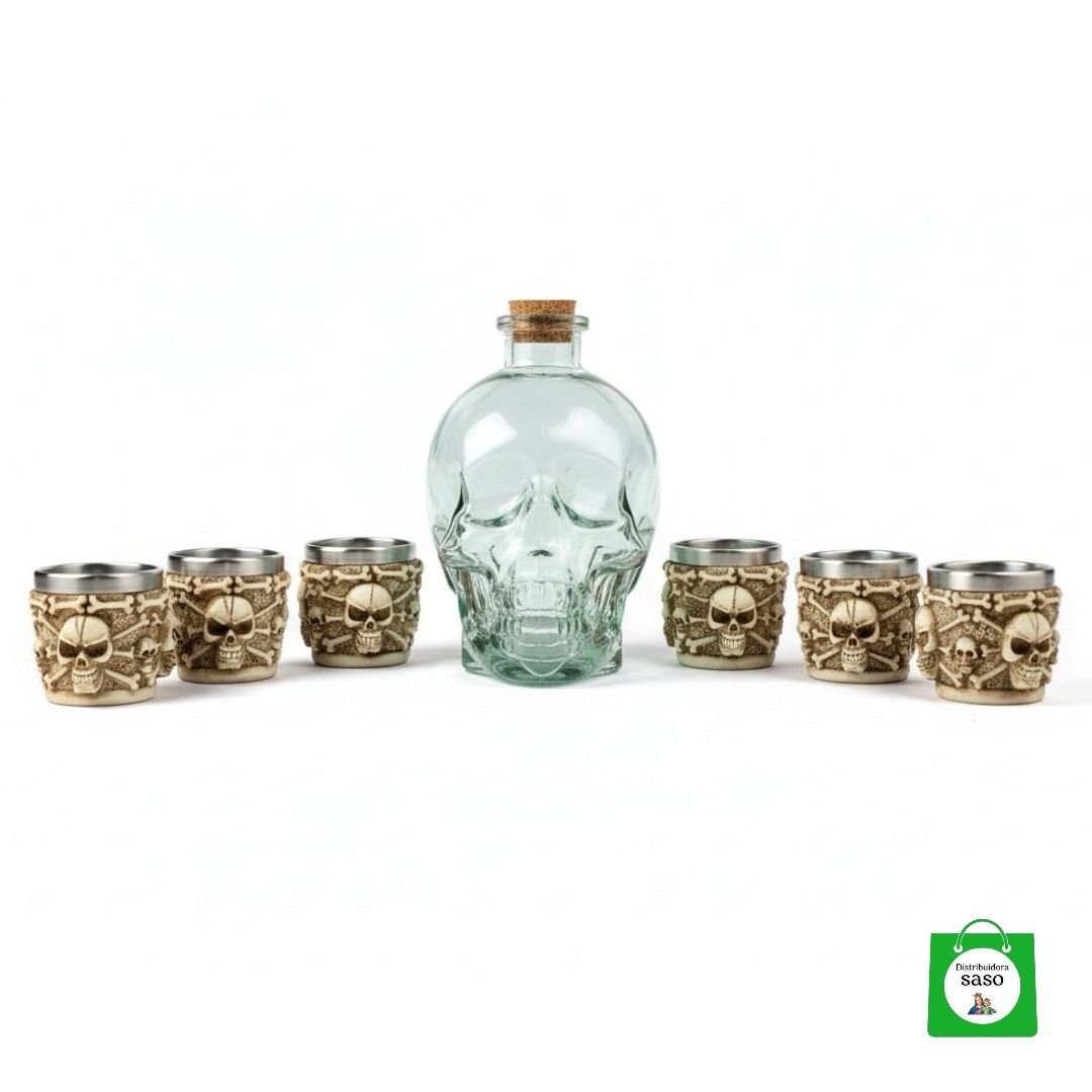 | Contiene | copa shot de calavera, licorera de calavera |