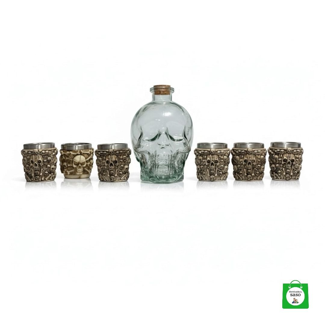 💀 Licorera Calavera Transparente 750ml + 6 Copas Calavera — Transparencia con Actitud para el Grupo Completo