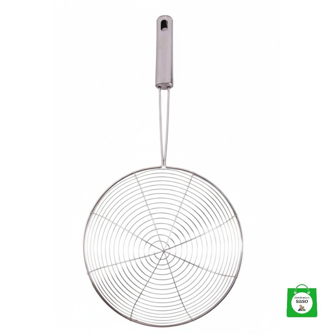 Prepara alimentos más saludables con esta espumadera grande profesional. Perfecta para retirar el exceso de aceite, espuma o impurezas al freír, hervir o preparar caldos. Su mango largo te protege del calor y su red metálica de alta resistencia garantiza durabilidad. Ideal para cocinas caseras y profesionales.