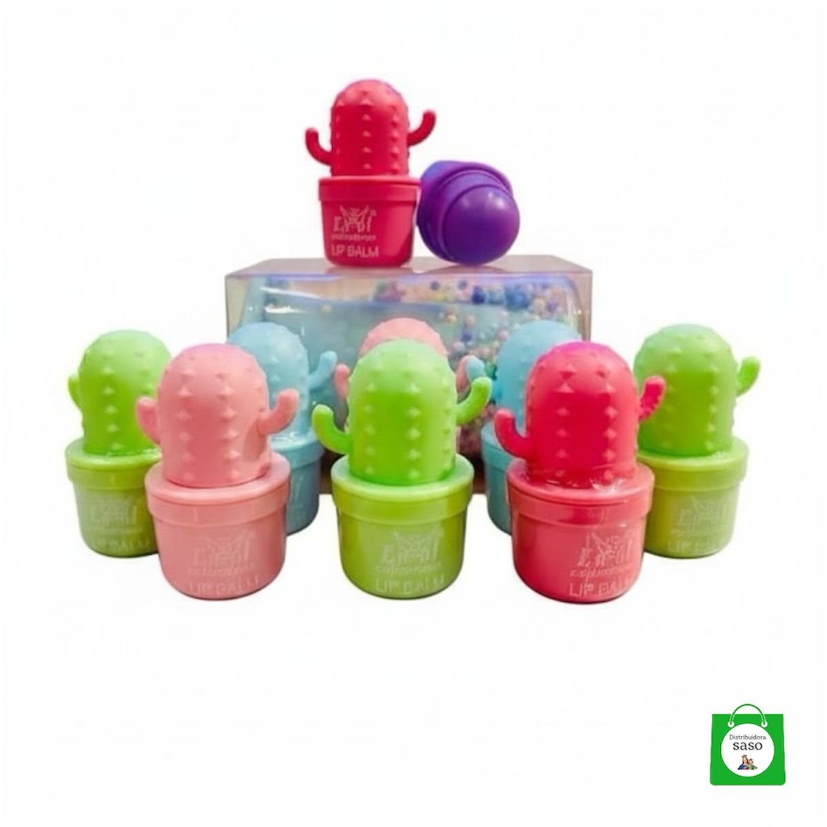 Práctico y encantador brillo bálsamo labial con diseño de cactus, ideal para hidratar y dar un toque de brillo a los labios. Su presentación llamativa lo hace perfecto para uso personal, regalos o venta en negocios.