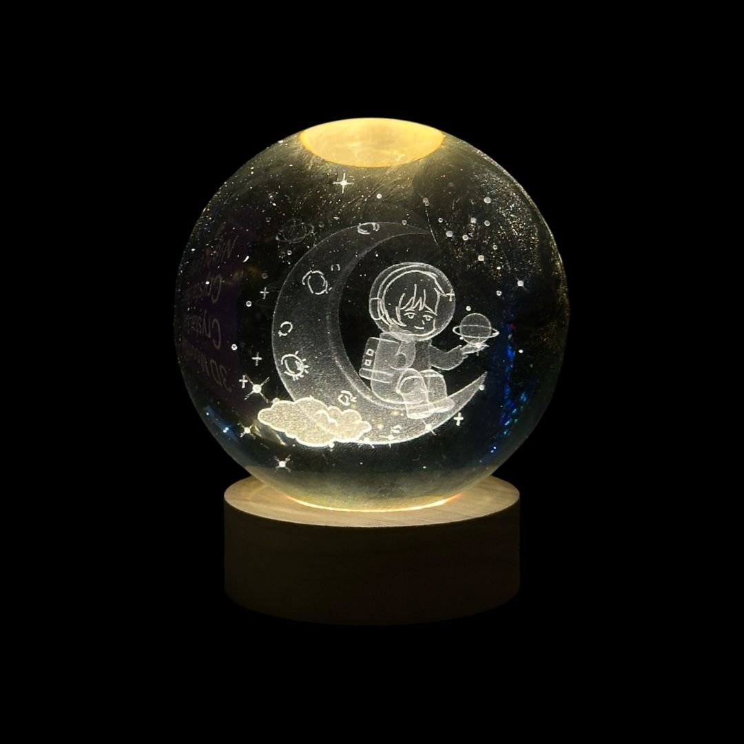 esfera de luz del astronauta sentado en la luna de 10cm