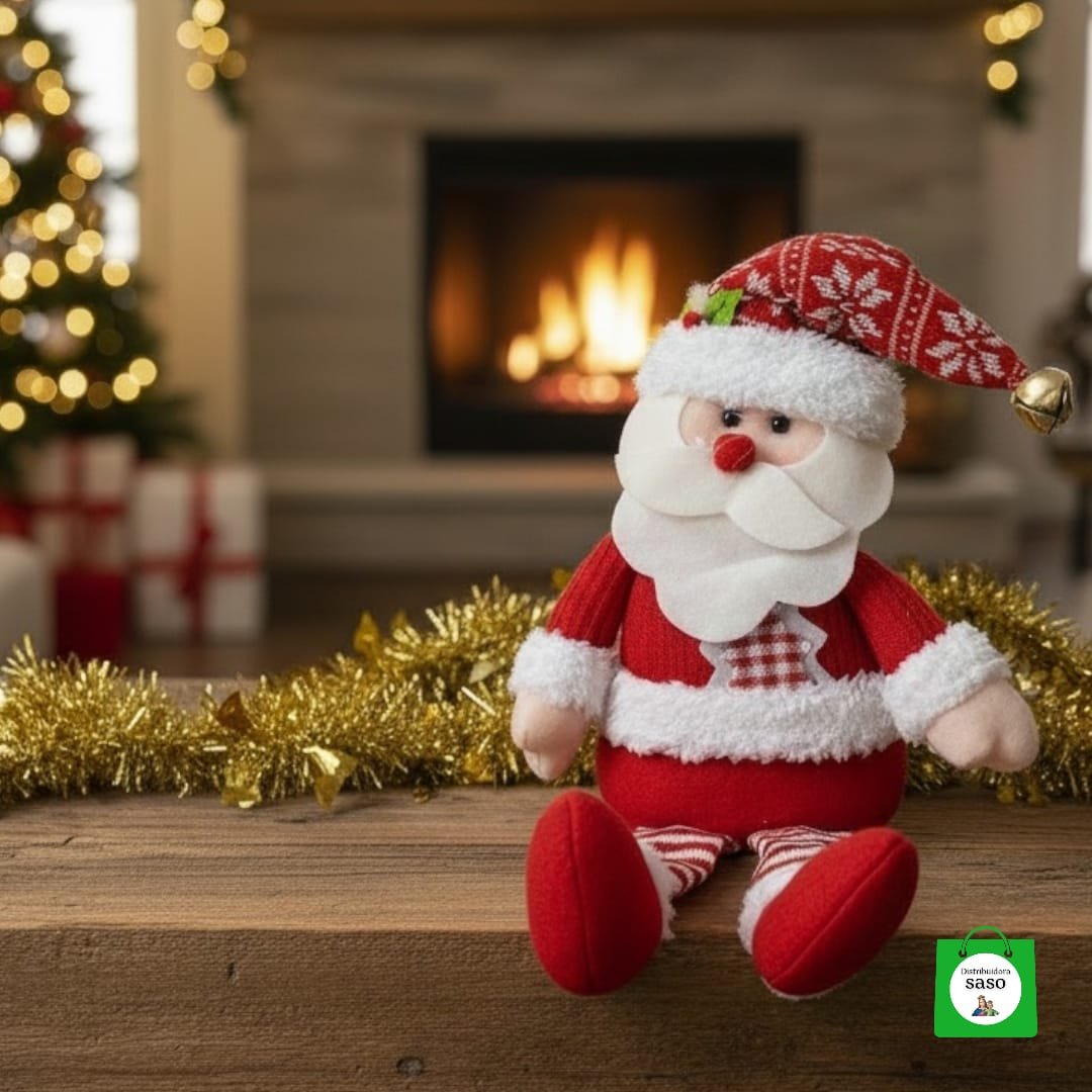 Decora tus espacios con el encanto de la Navidad con este hermoso muñeco de Papá Noel de 30 cm de altura, diseñado con relleno de arena para mantenerse sentado de forma estable sobre mesas, repisas o escritorios. 🎄